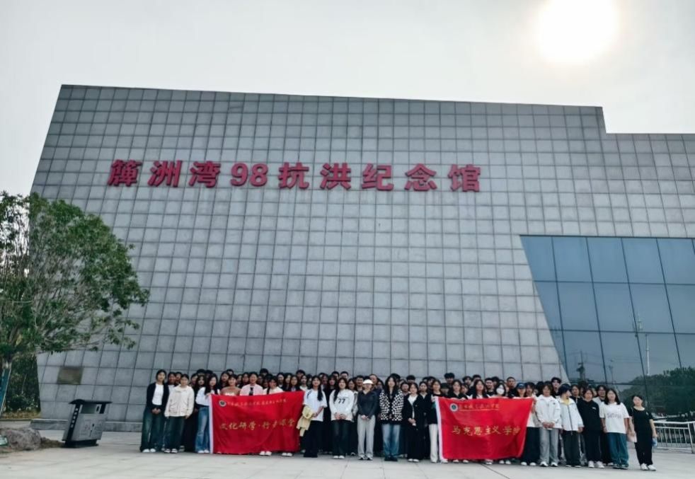 青山一道,风雨共担;洪水无情,人间有爱。同学们在簰洲湾九八抗洪烈士陵园为在1998年抗洪壮烈牺牲的勇士们默哀、鞠躬、献花。为深入了解抗洪英雄事迹,大家来到了簰洲湾98抗洪纪念馆,当烈士们的年龄映入同学们眼帘时不少同学有感而发,那是他们的青春年华!奔腾不息的万里长江, 回顾那段惊心动魄的抗洪历史,九八抗洪是一段艰难的历程,更是一曲光辉的赞歌。