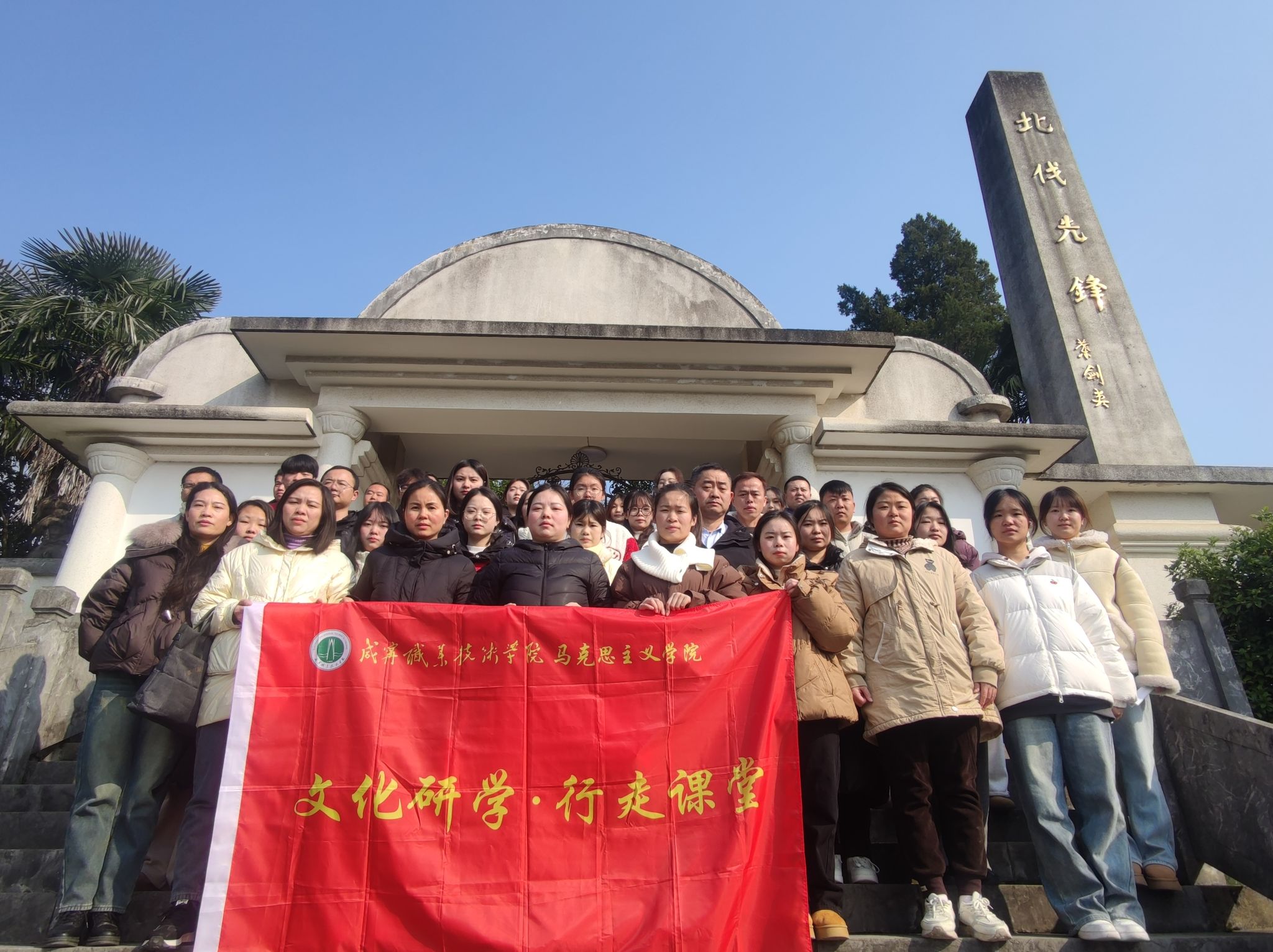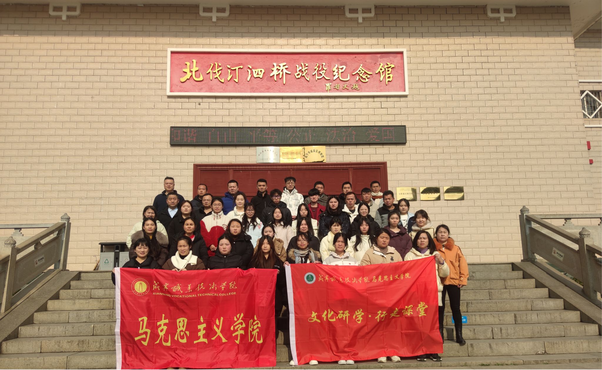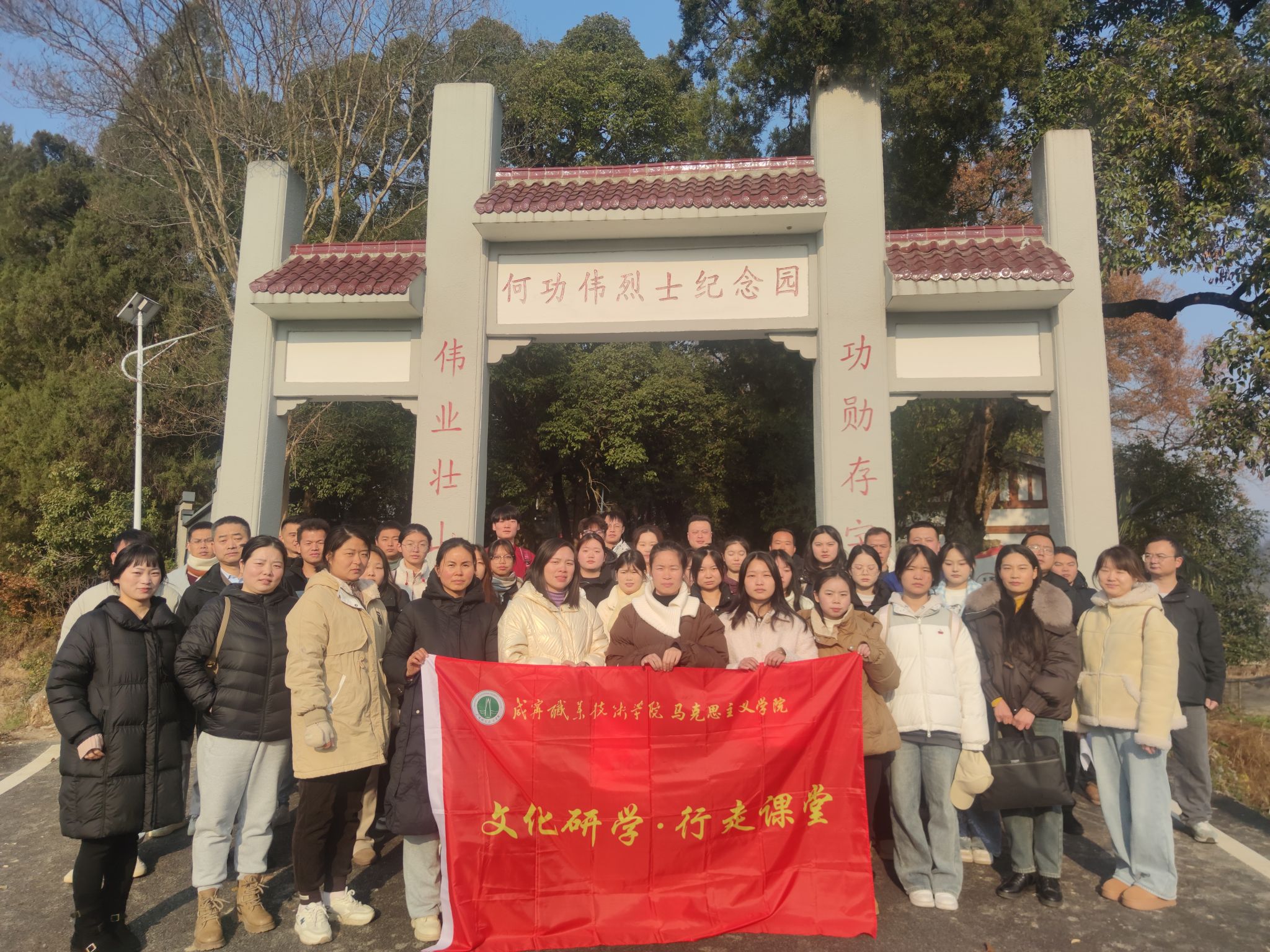 从桂花镇的何功伟烈士陵园到汀泗桥北伐战争纪念馆;从肖世模烈士墓到美丽乡村-陈家沟......2024年12月20日,三亿体育组织建筑公司、人文艺术学院师生代表一路唱着红歌,追寻着红色足迹,展开了一场以“找寻红色印迹,赓续红色血脉”为主题的研学活动。这是三亿体育为进一步增强思想政治理论课教学的实效性,开展的“行走的思政课堂”。