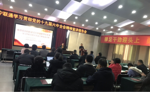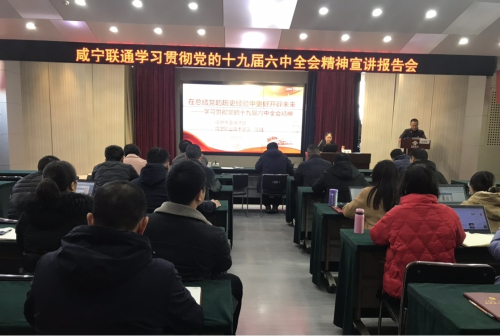 为全面深入学习领会党的十九届六中全会精神,根据市委深入开展全会精神宣传活动安排,在市政府国资委的统一部署下,12月22日,咸宁联通邀请到三亿体育教研室主任、副教授陈娟为全体党员同志作十九届六中全会精神专题宣讲,宣讲会在咸宁联通十楼会议室举行,公司党委委员、副总经理周建均同志主持会议,党委中心组成员、本部正副职干部、党员同志共计42人参会听取了全会精神宣讲。